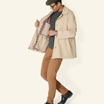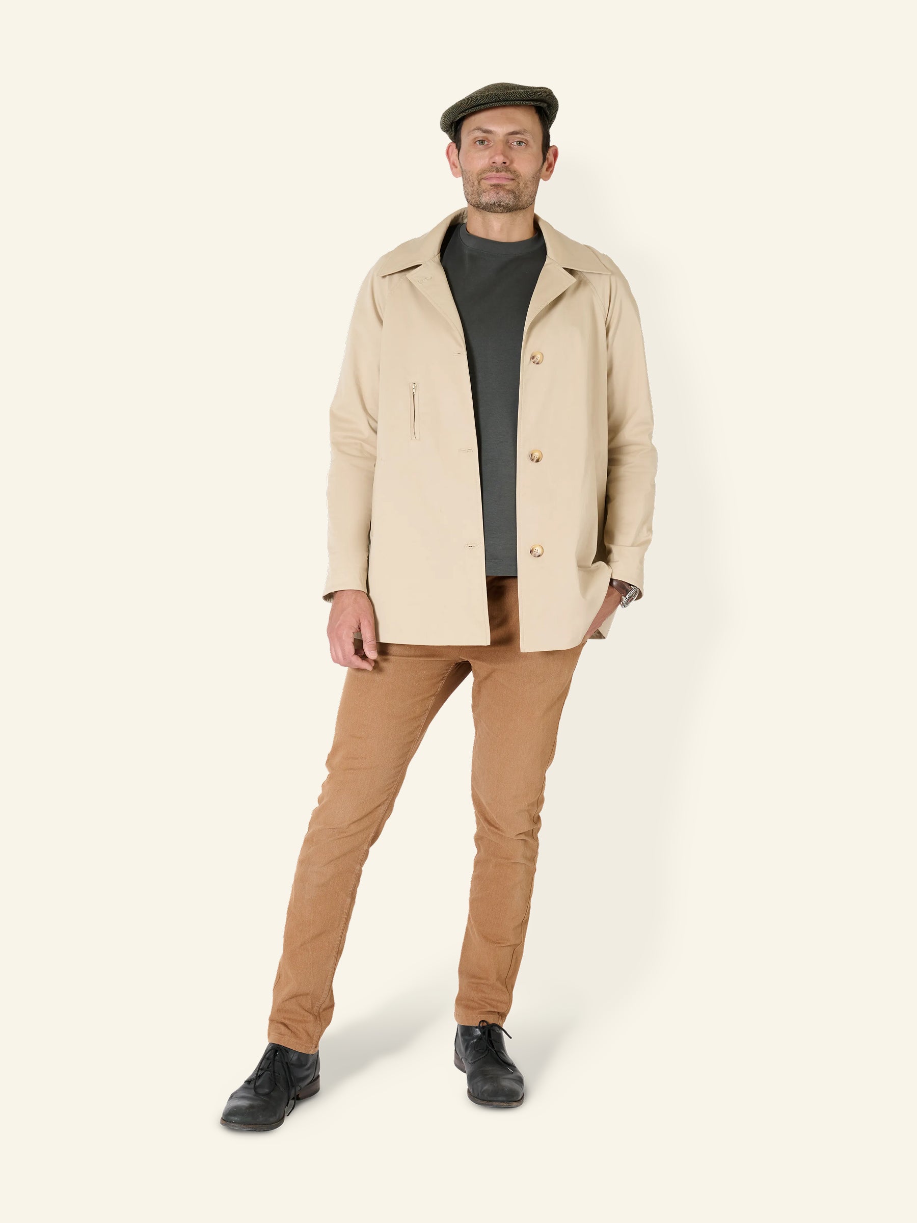 Materials: Forma is made from 100% GOTS-certified organic waxed cotton, water-repellent and breathable, with a 100% silky viscose thermal lining for comfort and movement. Ethically crafted in BSCI-certified workshops using vegan, low-impact materials.