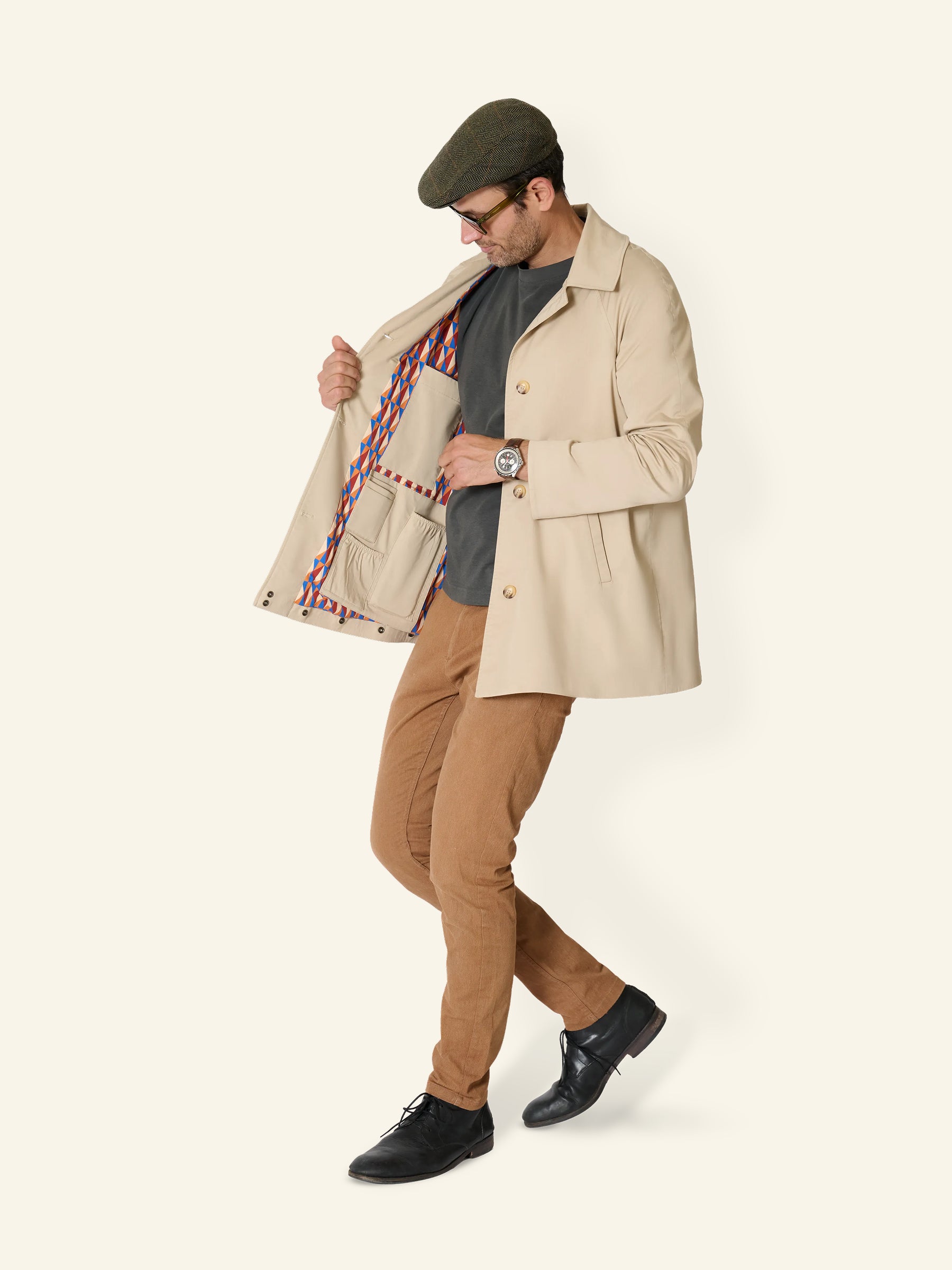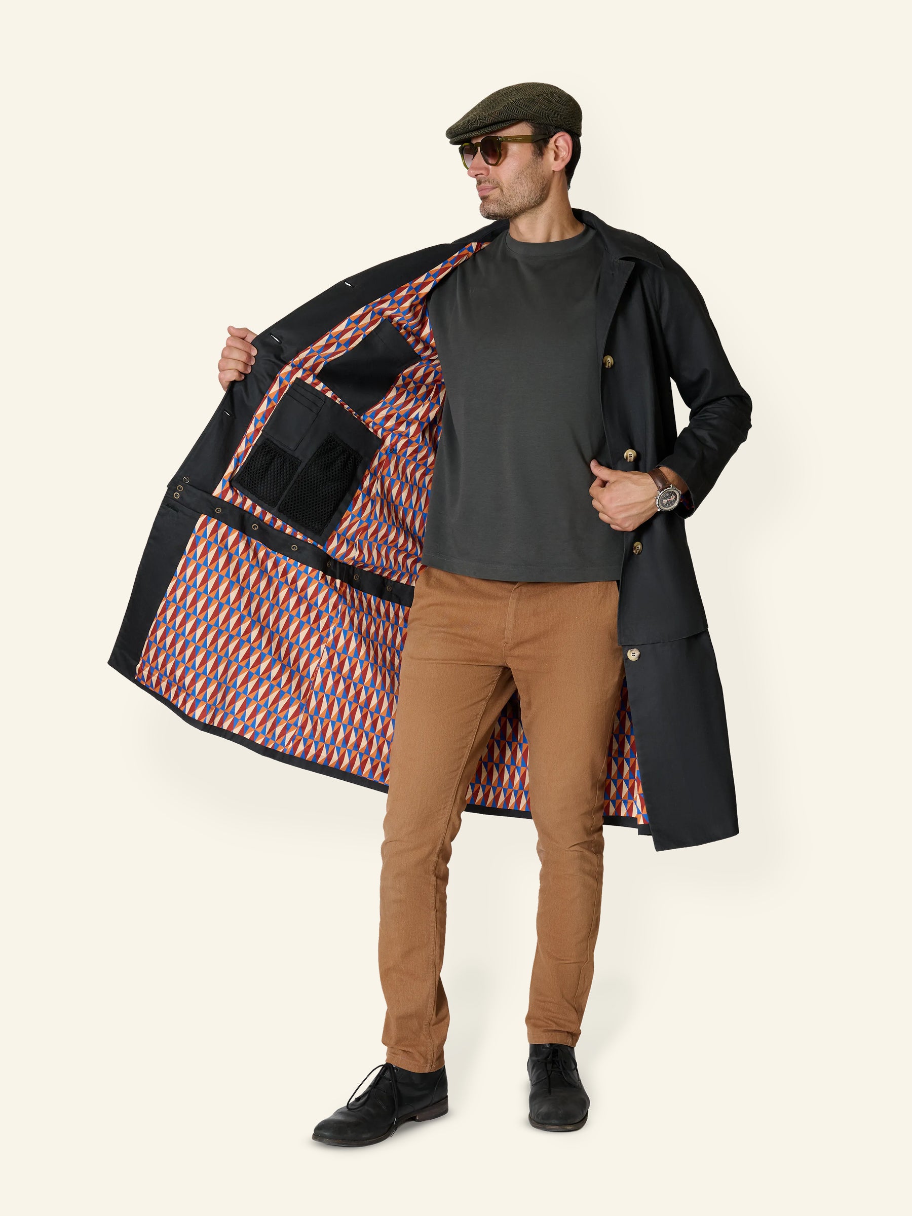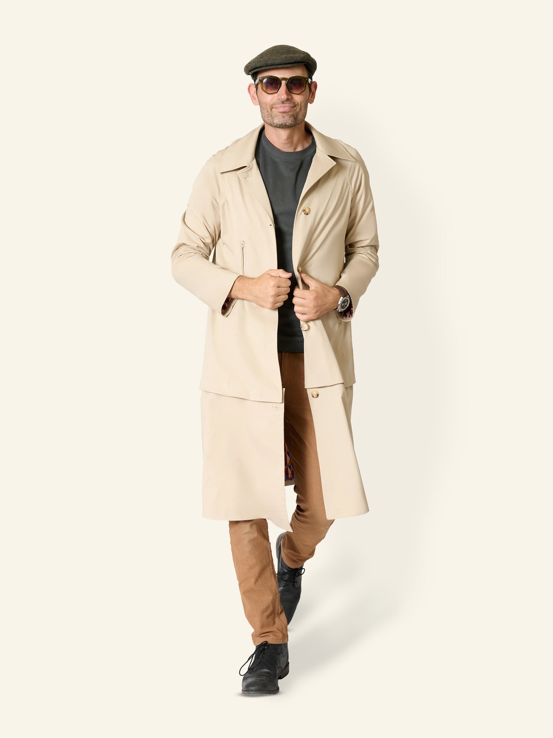 Be ready for any weather with this hood that clips on and off effortlessly using secure press buttons. store it comfortably inside your trench coat’s pockets so it’s always ready when you need it.